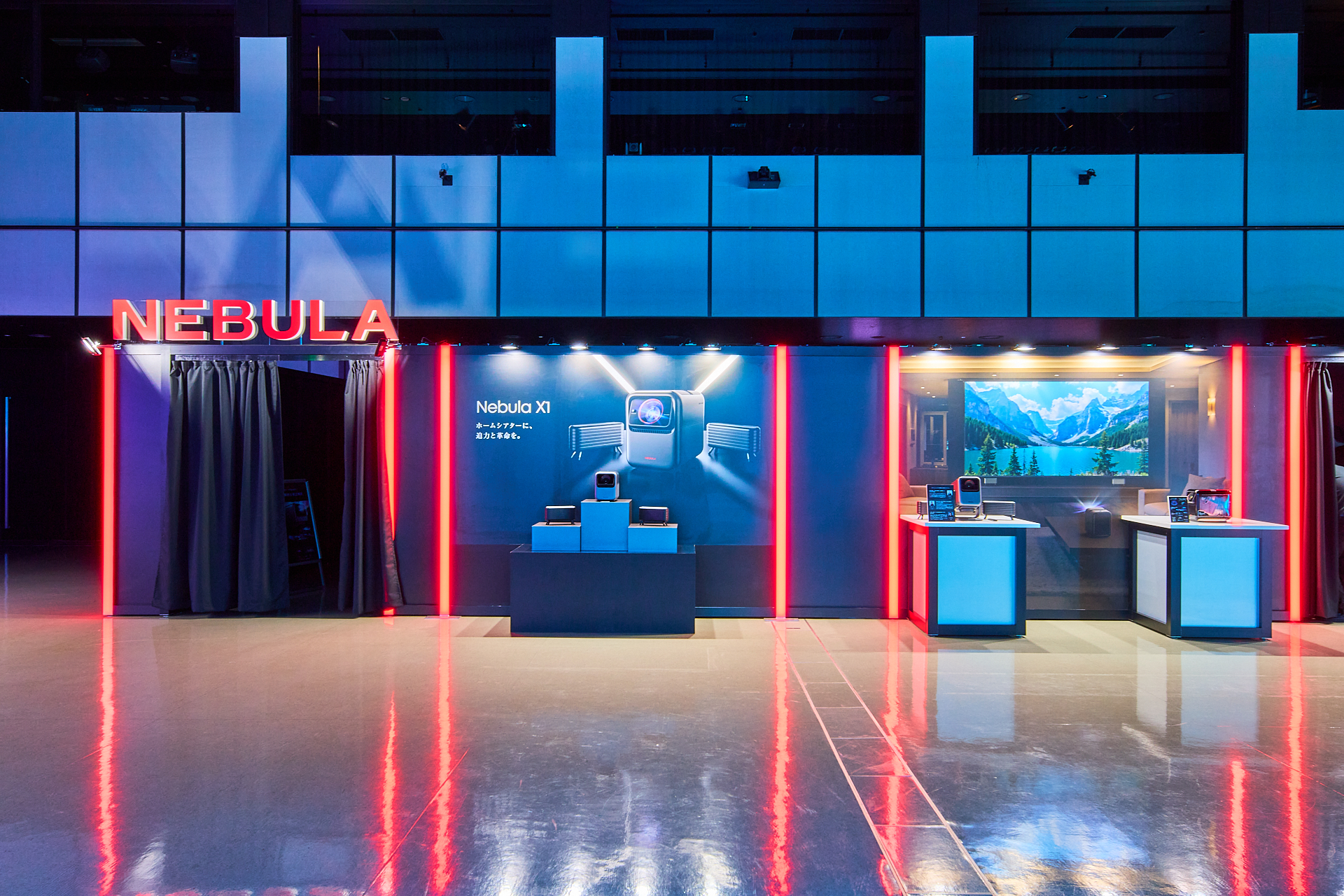 Ankerグループの多彩なブランドを紹介するブースと共に、会場中央にはキービジュアルを立体的に表現する光のシンボル展示を設置した。
